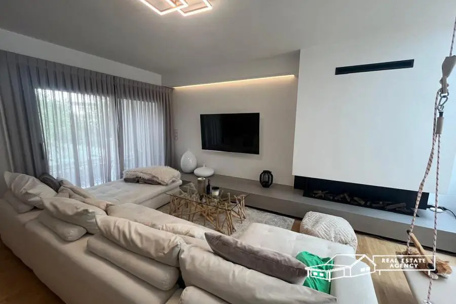 Voula-Pigadakia, a luxurious maisonette of 240 sqm, fully renovated in 2020, is available for sale. It consists of a ground floor, 1st floor, attic and playroom. It comprises a living room with energy fireplace and direct access to the garden, wc, kitchen with storage space and sitting area in the playroom, 4 bedrooms (one master with its own bathroom and jacuzzi at the attic) and another bathroom. The maisonette has autonomous heating with oil and air conditioning in all areas, oak floors, alarm system with cameras, aluminum frames with double glazing and electric shutters, security doors, elevator, garden and underground parking. For more info: +30 694477 2536, website: www.merryland.com.gr, Email: [email protected], Id: 15450