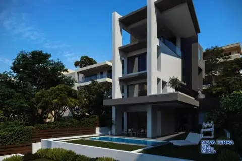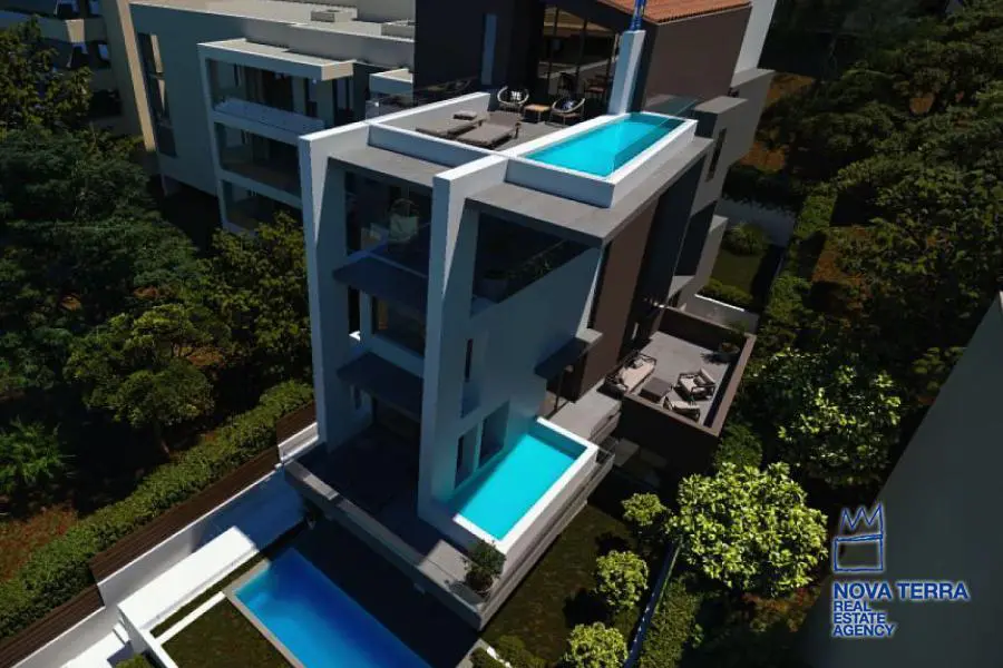 VOULA - KALYMNIOTIKA, Duplex / Triplex Apartment,, Sale, 171 sq.m, year built 2025, 3 rooms, Basement, Ground Floor, Various Characteristics: Balcony, Bath (3), Escalator, Fire Place, Garden, Kitchen, Living room, Playroom, Store Room, Swimming Pool, Master Bedrooms: 1 Master Bedroom, Flooring: Wooden floor, Heating: Air Conditioning, Autonomous Heating (auto-system), Floor heating, Access road, Aluminium panels, Bright, Double-glazing, Electric Roller Windows, Facade, From Side to Side, Luxury, Minimal, Newly built, Night charge, Painted, pets allowed, Residential area, Satellite TV, Screens, Security Alarm, Security Door, Solar Heating, Weekend Residence, Wheelchair Facilities, In perfect condition: Pets allowed: For investment: Parking area: Garage (2), Energy class: A. property ID: 48396, www.nova-terra.gr