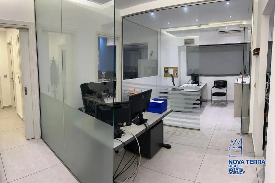 VOULA - VOULA KATO, Office,, Rental, 135 sq.m, on a plot of 650 sq.m, year built 2018, 6 rooms, 2nd, Various Characteristics: Bath, Escalator, Kitchen, Toilet, Flooring: Tile, Heating: Autonomous Gas Heating, Access road, Aluminium panels, Bright, Double-glazing, From Side to Side, Luxury, Minimal, Painted, Security Alarm, Security Door, In perfect condition: Parking area: Parking, Energy class: Β. property ID: 52851, www.nova-terra.gr