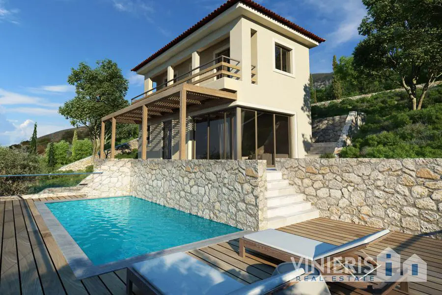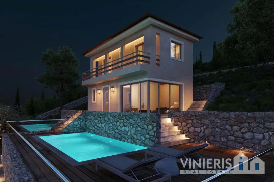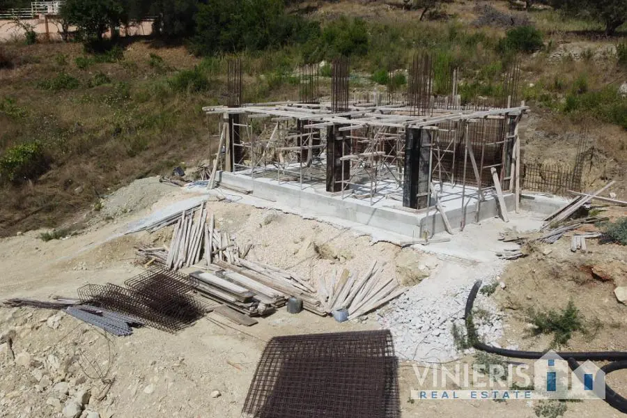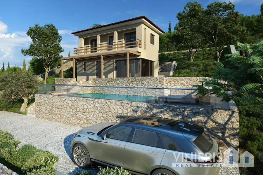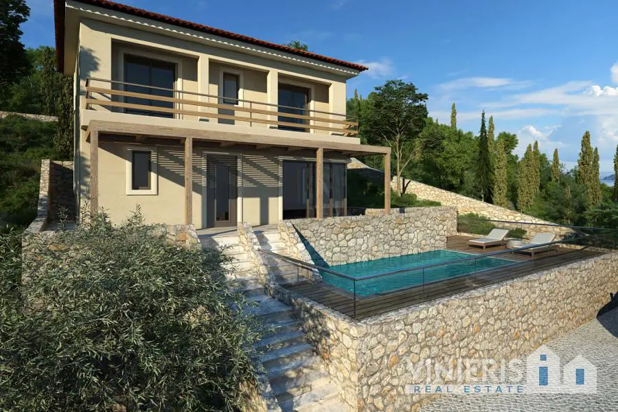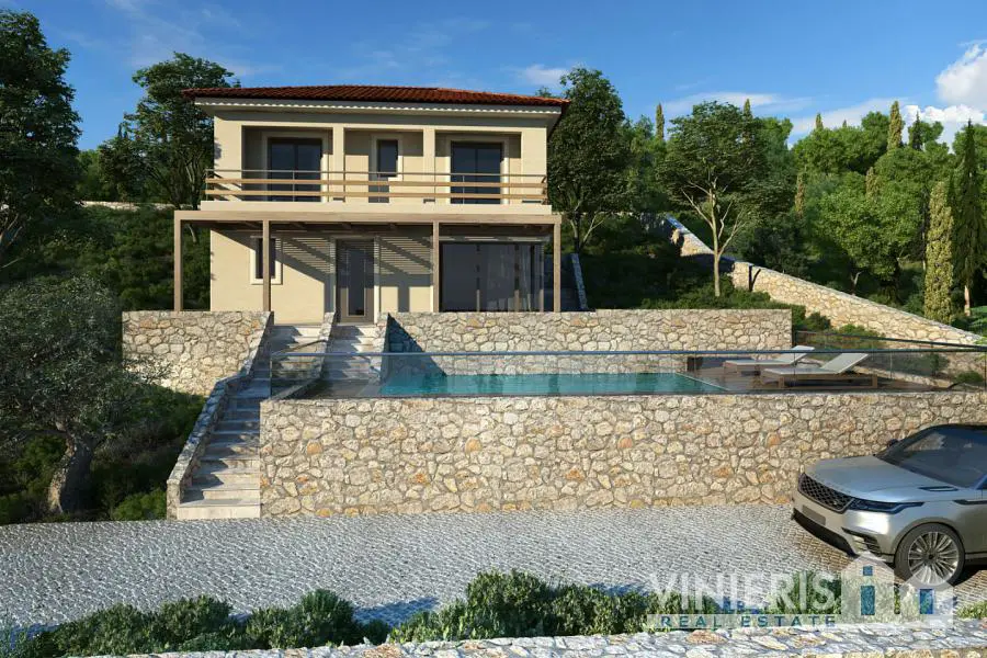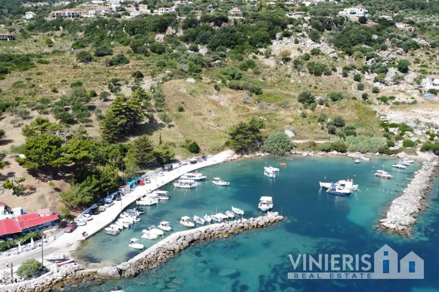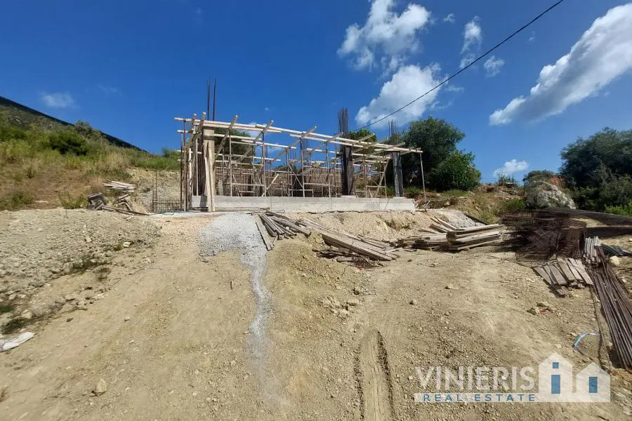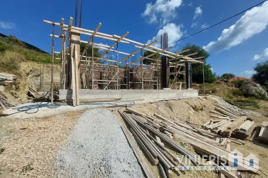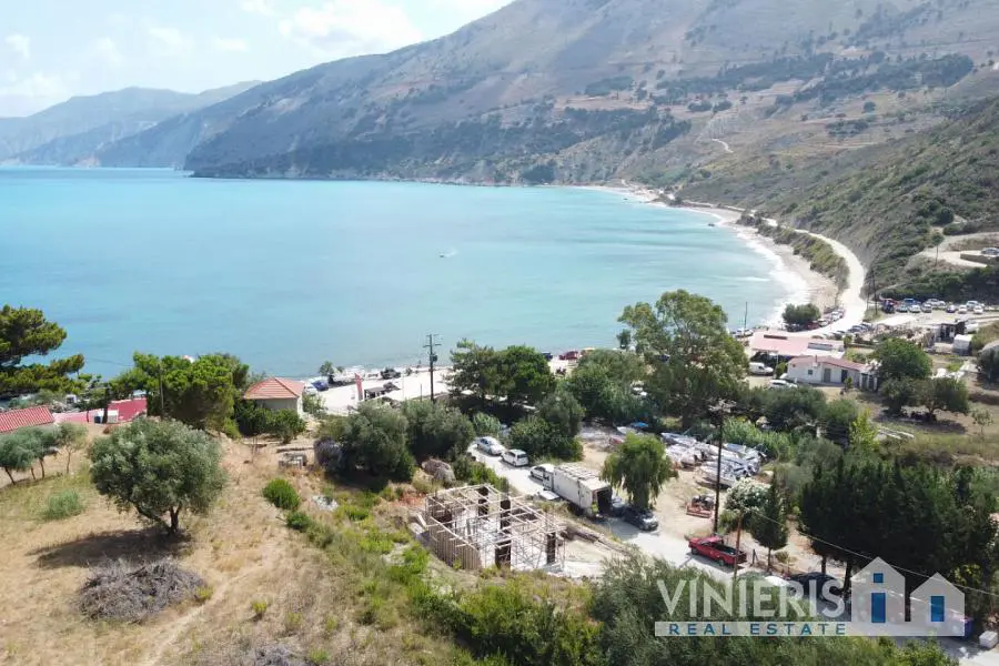 In one of the most stunning areas of Kefalonia, in the traditional village of Zola and just 30 meters from the beach of Agia Kyriaki — known for its beautiful, crystal-clear waters and charming seaside tavernas — this uniquely located plot is for sale. Construction has already begun on a luxury villa based on an approved building permit. The plot has a total area of 761.97 sq.m., has frontage on the provincial road, is just a short distance from the village’s small harbor, and offers unobstructed sea views. Its location, virtually on the water’s edge, offers direct access to the beach and a unique sense of tranquility, set in an authentically traditional environment with lush green hillsides and charming village homes. The permit allows for the construction of a two-storey luxury villa with a private pool, and the project is already well underway: the foundation and structural columns are complete, as shown in the recent photo. The ground floor is designed to include an open-plan kitchen, dining, and living area, a WC, and a storage room. The first floor, accessible via an internal staircase, will feature two bedrooms, each with its own en-suite bathroom, and a large terrace with panoramic views of the natural landscape and the sea. The outdoor area has been designed with a private pool and a beautifully landscaped garden that blends stone, wood, and water elements, creating a unique environment for relaxation and enjoyment. This property, immersed in unspoiled nature, is an exceptional investment opportunity — ideal for both tourism development or as a private residence. For sale: €170,000 in its current state (foundation and columns completed) €420,000 fully completed, according to the approved plans and building permit