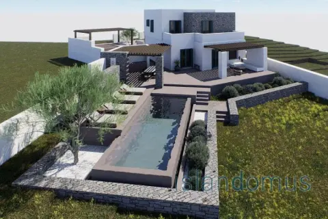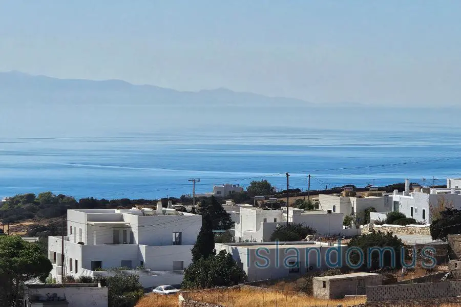 Within the boundaries of the village of Aspro Chorio, in a privileged location, with an unobstructed view towards the sea, the neighbouring islands and the surrounding hills, is located this particular piece of land. It has a total building capacity of 400 sqm of up to two-storey buildings, plus semi-outdoor areas, basement areas, garages and can be issued with a permit for swimming pools. It is for sale with construction permit for 206sqm in ground floor and first floor (four bedrooms and swimming pool). The picturesque Dryos with its little harbour and the local market, the well-known Golden Beach and the beautiful beaches of the southeastern side of the island are just a short distance away. A very good property in an area of growing demand. The adjacent plot, with a total area of 883 sq m, issued with a building permit for a house of 199 m² with swimming pool (a two-storey building, four bedrooms) , with sea view and the possibility of building in total 400 sq m, is also available for sale at the price of 430,000 euros.