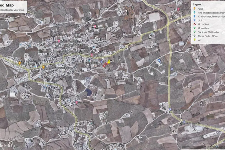 This 1000-square-meter plot of land in Karterado, Santorini, boasts captivating sea and mountain views, located just 2 kilometers from both the sea and Thira. With a generous building capacity of 400 square meters, the property holds a permit for constructing four independent houses, one of which features a 40-square-meter basement. Each house is thoughtfully designed, comprising a 60-square-meter ground floor and a 40-square-meter first floor. The property is also equipped with ample parking space for seven vehicles, making it an ideal opportunity for creating a picturesque and spacious residential enclave on the stunning island of Santorini.