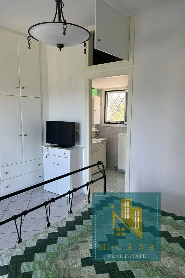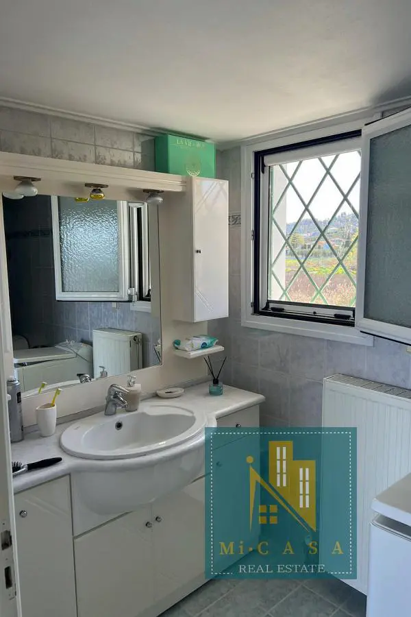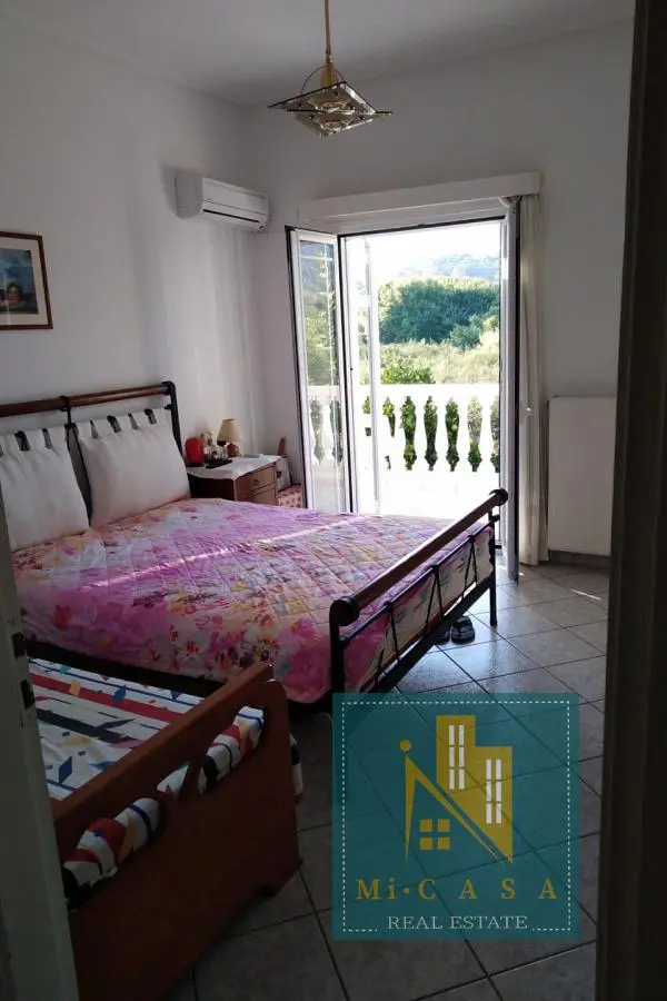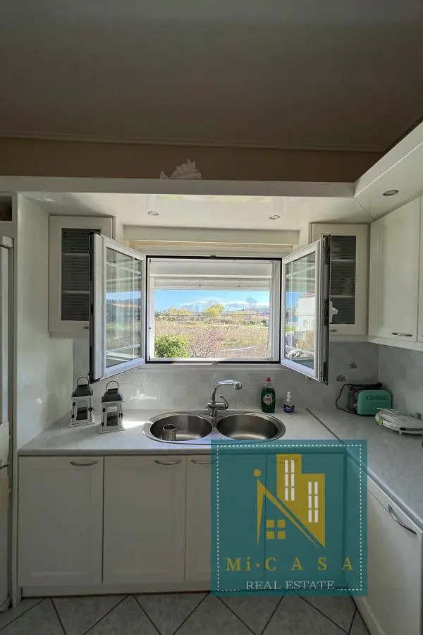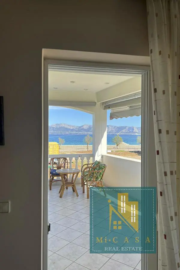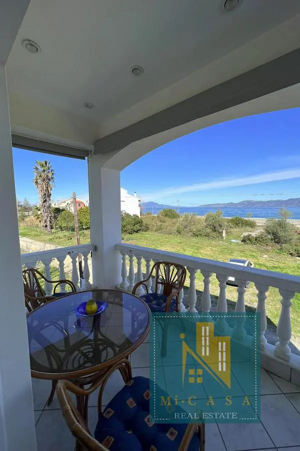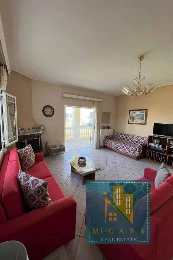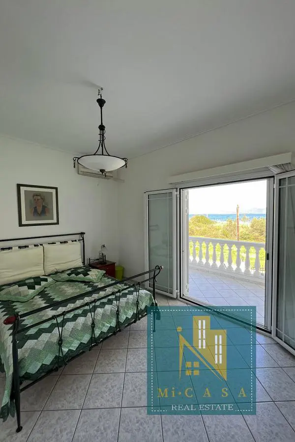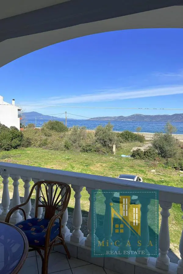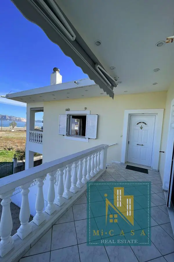 With a view of the enchanting blue sky and sea, the 190 sq. m. villa is built in Pefki, Evia, on a plot of 583 sq. m. , with the possibility of additional construction, and just 70 meters in front of the sea. Surrounded by a garden with grass, large terraces with awnings all around, it also has a barbecue with a built- in oven and a pergola. The ground floor of 70 sq. m has a kitchen, one bathroom and a storage area. The 1 st floor of 120 sq. m. has a large and sunny kitchen with an open- plan living room and a large fireplace, equipped with built- in electrical appliances, as well as 2 bedrooms, 2 bathrooms and a large bedroom with its own bathroom. It was built in 2000 and has all the comforts, the natural beauty of the surrounding area, built in a privileged position. Ideal for holiday or permanent residence. Its position and location make it unique, price €500 , 000. ID: 80