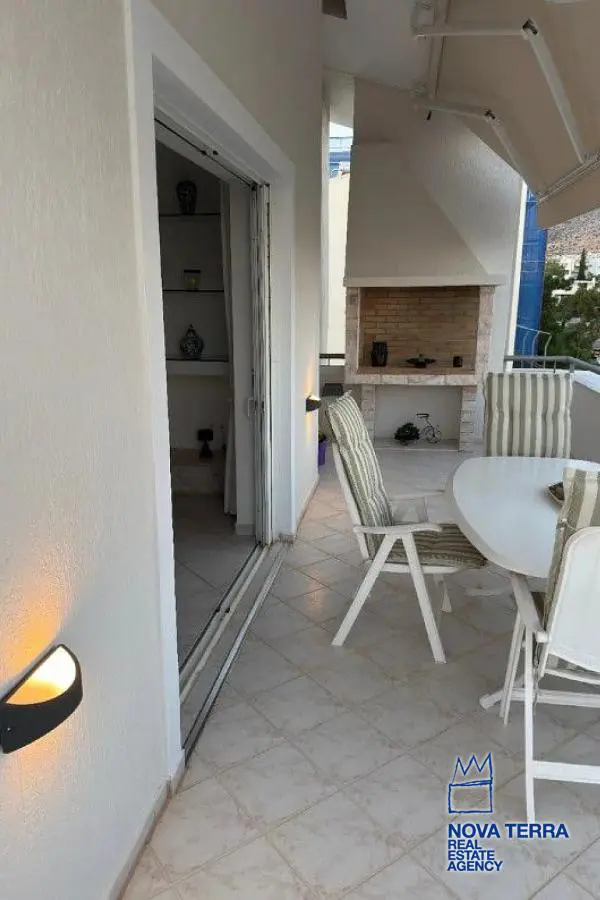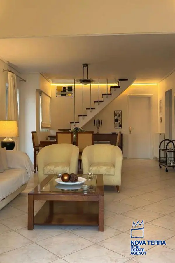 Γλυφάδα Κέντρο – Μεζονέτα 4ου-5ου, ρετιρέ, φωτεινό, διαμπερές, κατασκευή 2000, πλήρης ανακαίνιση 2025. 4ος όροφος: σαλόνι - τραπεζαρία με τζάκι, κουζίνα με καινούριες εντοιχισμένες συσκευές & μπαλκόνι, ένα υπνοδωμάτιο, λουτρό & WC. 5ος όροφος: 2 υπνοδωμάτια & WC. Αυτόνομη θέρμανση πετρελαίου, A/C, διπλά τζάμια, πόρτα ασφαλείας, συναγερμός, αποθήκη, ασανσέρ, μεγάλες βεράντες με θέα & ηλεκτρικές τέντες. Ενοικιάζεται πλήρως επιπλωμένο. Πλησίον του κέντρου της Γλυφάδας.