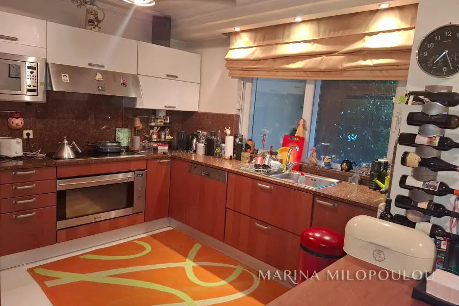 Βούλα - Καλυμνιώτικα, Μεζονέτα μεσοτοιχίας και στις 2 πλευρές, 3 επιπέδων, συνολικής επιφάνειας 264τμ, εντός οικοπέδου 250 τμ. - Υπερυψωμένο Ισόγειο, επιφανείας 88τμ, κύριος χώρος υποδοχής με τζάκι, ενιαία κουζίνα με έξοδο σε κήπο. - 1ος όροφος, 3 υ/δ (1 master με δική του μεγάλη βεράντα, τα 2 μόνο με μεγάλα παράθυρα), 1 επιπλέον μπάνιο. - Playroom - ξενώνας, ο οποίος έχει επαρκή φωτισμό (σχεδόν Ισόγειο). Καθιστικό με τζάκι, ενιαία κουζίνα με συσκευές miele,1 υ/δ, 1 μπάνιο και όλοι οι λοιποί αποθηκευτικοί χώροι. Διαθέτει θέρμανση πετρελαίου, ηλιακό θερμοσίφωνα, boiler, πόρτα ασφαλείας, συναγερμό, ηλεκτρικά ρολά, τζάμια triplex, μαρμάρινα δάπεδα και σκάλες, δάπεδα iroko στα υ/δ, ανοιχτή θέση στάθμευσης για 2 αυτοκίνητα στον περιβάλλοντα χώρο. Τιμή ζώνης 2600€. Αποτελεί μέρος συγκροτήματος 4ων κατοικιών, εντός οικοπέδου 1 στρέμματος. Εξαιρετική τοποθεσία ακινήτου σε ήσυχη οικιστική περιοχή με μονοκατοικίες. Σε απόσταση 1,8 χλμ από την Β' πλαζ Βούλας που αναπλάθεται σε πολυχώρο αναψυχής, 2 χλμ από το κέντρο της Βούλας, και 18,5 χλμ από το αεροδρόμιο.