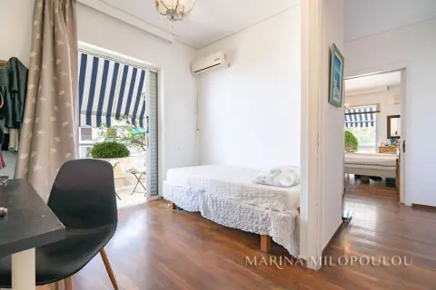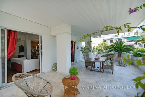 ΒΟΥΛΑ - Κέντρο, μεζονέτα κτιρίου, 2ου - 3ου ορόφου, συνολικής επιφάνειας 163 τμ, απέναντι τη Β' πλαζ Βούλας και σε μικρή απόσταση από την πλατεία . -2ος,όροφος, επιφανείας 80τμ άνετος χώρος υποδοχής με τζάκι, τραπεζαρία, ανοιχτή ευρύχωρη κουζίνα, 1 wc, μεγάλη βεράντα προσόψεως επιφανείας 67τμ συν τις βοηθητικές. -3ος όροφος, επιφανείας 83 τμ, 3 υ/δ (1 master), 1 επιπλέον μπάνιο, μεγάλη βεράντα προσόψεως 20τμ συν τις βοηθητικές . Διαθέτει πόρτα ασφαλείας, irocco δάπεδα σε όλους τους κυρίως χώρους, διπλά τζάμια, τέντες, A/Cs στα υ/δ, μεγάλες βεράντες και στα 2 επίπεδα, αποθήκη υπογείου, 1 ανοιχτή θέση στάθμευσης, 15τμ. Τιμή ζώνης 2800€. Ο ιδιοκτήτης ΔΕΝ δέχεται δανεισμό. Εξαιρετική η θέση του ακινήτου, 50 μέτρα από την Β' πλαζ Βούλας, η οποία ήδη αναπλάθεται σε υψηλού επιπέδου πολυχώρο αναψυχής, με προδιαγραφές πράσινης παραλίας, με αθλητικές παροχές, κολυμβητήριο, restaurant-cafe, 450μ από την ήδη οργανωμένη πλαζ του "Apollon Hotel' με τα πόδια στον περιπατητικό πεζόδρομο του Καβουρίου, 19 χλμ από το αεροδρόμιο.