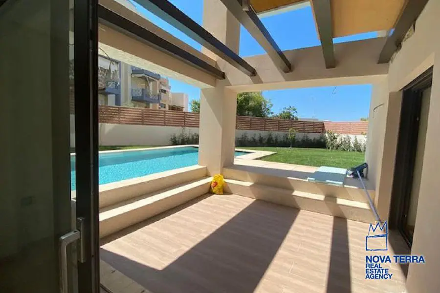 Μεζονέτα Υπογείου ( 50,27τ.μ.) - Ισογείου (76,95τ.μ.) - Ημιόροφου (43,59τ.μ.) Συνολικής Επιφάνειας 170,81 τ.μ. Το ακίνητο διαθέτει ιδιόχρηστο κήπο 223,09τ.μ. και πισίνα 32τ.μ. Επίσης διαθέτει 1 θέση στάθμευσης Υπογείου και 1 αποθήκη στο Υπόγειο. Το ακίνητο διαθέτει 3 en-suite Υπνοδωμάτια ( 1 υπνοδωμάτιο ανα όροφο ), 1 wc στο ισόγειο . Σαλονι - Τραπεζαρία - κουζίνα στο Ισόγειο με θέα την πισίνα και Σαλόνι - Κουζίνα στο υπόγειο με φυσικούς αερισμούς και φωτισμούς απο Cour anglaise . 2ο Σαλόνι στον ημιόροφο. Για την υπόδειξη του ακινήτου είναι απαραίτητη η υπόδειξη της αστυνομικής ταυτότητας και του Α.Φ.Μ. σας σύμφωνα με τον Ν.4072/11-4-2012 ΦΕΚ 86