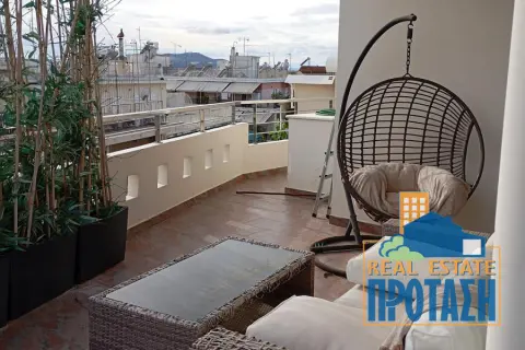 Πρόκειται για ένα εξαιρετικό ακίνητο που σχεδιάστηκε με γνώμονα την βιωσιμότητα την υψηλή αισθητική και λειτουργικότητα προσφέροντας στους κατοίκους άνεση και ποιότητα. Το διαμέρισμα πωλείται πλήρως επιπλωμένο με minimal αισθητική και με εντοιχιζόμενες ηλεκτρικές συσκευές. Ο κάτω όροφος αποτελείται από σαλόνι, κουζίνα wc και ένα παιδικό δωμάτιο (80 τ.μ.) και μεγάλη γωνιακή βεράντα με απεριόριστη θέα στην Αθήνα. Επάνω όροφος αποτελείται από μια μεγάλη κρεβατοκάμαρα master με home cinema, βεστιάριο και αποκλειστική χρήση ταράτσας (βεράντα). Υπάρχει κλιματιστική μονάδα με εξαερισμό σε όλο το σπίτι, αποθήκη εντός διαμερίσματος και θέση παρκινγκ. Όλα τα υλικά της ανακαίνισης είναι πολύ υψηλής ποιότητας και αντοχής. Πανοραμικά παράθυρα, μπαλκονόπορτες και οροφή εξασφαλίζουν μέγιστη εκμετάλλευση φυσικού φωτισμού. Είναι άμεσα διαθέσιμο και βρίσκεται 300 μ από τον σταθμό τρένου Άνω Πατήσια.