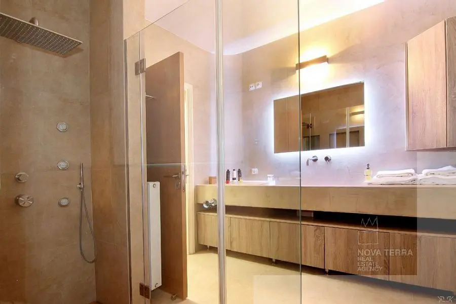 Θέα θάλασσα από όλα τα επίπεδα. Πλήρως εξοπλισμένο, τηλεοράσεις, Αντλία θερμότητας, Πισίνα αντίστροφης κολύμβησης, Αυτονομία θέρμανσης 10 ζωνων, πανάκριβα έπιπλα + λευκά είδη. Καταπληκτικό!!