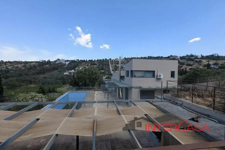 Mονοκατοικία, συνολικής επιφάνειας 460,06 τ.μ. αποτελούμενη από υπόγειο, ισόγειο & δώμα με πρόσβαση στην βεράντα με θέα θάλασσα σε αγροτεμάχιο 4,5 στρ. Στον περιβάλλοντα χώρο της διώροφης κατοικίας υπάρχει κλειστό γκαράζ, φυλάκιο, βοηθητικό κτίσμα, λεβητοστάσιο, χώρος για γήπεδο και πισίνα επιφανείας 60 τ.μ.