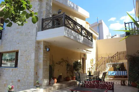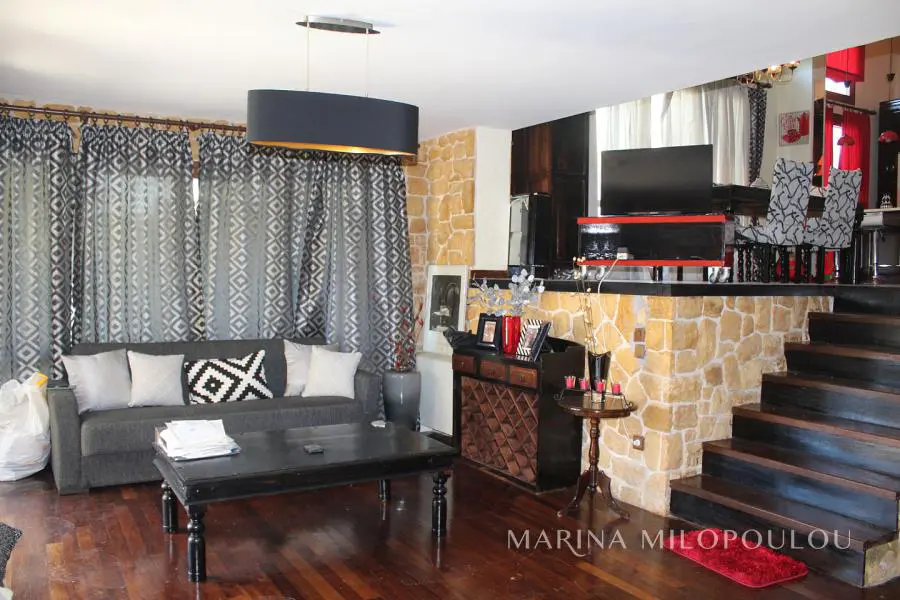 ΒΟΥΛΑ - Πανόραμα, στην χαμηλή ζώνη, διπλοκατοικία συνολικής επιφάνειας 300τμ, η οποία αποτελείται από 2 ανεξάρτητες κατοικίες, με διαφορετικές εισόδους και θέα θάλασσα από όλα τα επίπεδα. Είναι εντός επικλινούς οικοπέδου επιφανείας 340 τμ, με πρόσβαση από 2 δρόμους. Κλασσική αρχιτεκτονική με πέτρα και ξύλο εναρμονισμένο στο πυκνό πευκόφυτο λόφο του Πανοράματος. - Μεζονέτα 2 επιπέδων (επάνω): Στο πρώτο επίπεδο, ο χώρος υποδοχής με τζάκι, ενιαία τραπεζαρία κουζίνα, 1 wc, μεγάλη αυλή στην οποία υπάρχει χώρος για κατασκευή πισίνας. Στον όροφο χωλ, 2 υ/δ (1 master), το δεύτερο με θέα θάλασσα και walk - in closet. - Διαμέρισμα (κάτω) τύπου loft, το οποίο εκτείνεται σε 3 ανισόπεδα επίπεδα με σκαλιά: ενιαία τραπεζαρία κουζίνα, 7 σκαλιά προς τα κάτω το σαλόνι με τζάκι, 1 wc, 1 υ/δ, χώρος γραφείου και 1 μπάνιο. 'Εξοδος σε μεγάλη αυλή με προεγκατάσταση πισίνας και θέα θάλασσας. Η οικία διαθέτει δρύινα δάπεδα σε όλους τους κυρίως χώρους, fancoil για ψύξη / θέρμανση (αυτονομία ανά όροφο), νυχτερινό ρεύμα, προεγκατάσταση για ασανσέρ (φρεάτιο) και για κεντρικό κλιματισμό, μεγάλη υπόγεια αποθήκη όπου βρίσκεται και το λεβητοστάσιο, η οποία θα μπορούσε να διαμορφωθεί και σε υπόγειο garage με κατασκευή ράμπας, προεγκατάσταση πισίνας Βρίσκεται σε εύκολα προσβάσιμο σημείο, μέσα στο πράσινο και προσφέρει σχετική θέα θάλασσα από όλα τα επίπεδα. Άδεια οικοδομής το 2000, αποπεράτωση το 2003. Τιμή ζώνης 2500€. ΕΝΦΙΑ 2500€ Βρίσκεται σε απόσταση 1 χλμ από την πλατεία του Αγίου Νεκταρίου, 3,5 χλμ από την πλατεία της Βούλας, 4 χλμ από την Α'πλαζ Βούλας και 22 χλμ από το αεροδρόμιο.