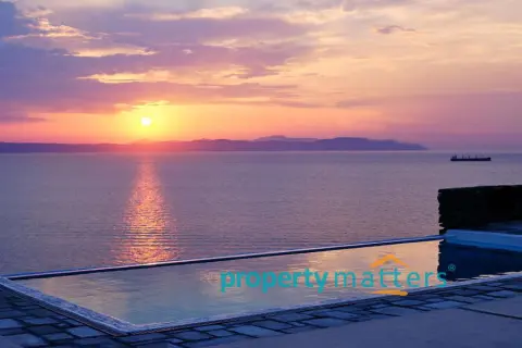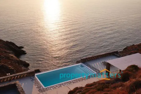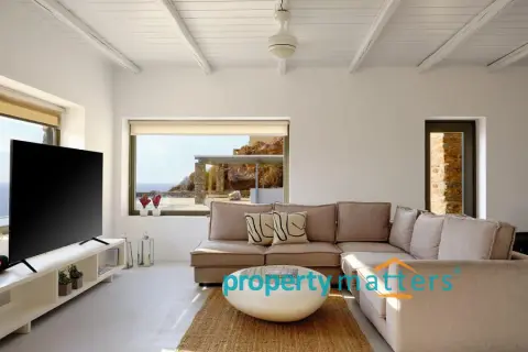 Kea, also known as Tzia, is one of the Cycladic Islands' hidden gems and one of the closest islands to Athens. With its unique charm and scarcity of hotels, Kea offers visitors the chance to rent private houses, most of which are constructed from local stone. The island boasts 45 beaches, many of which are accessible only by boat, making it an ideal destination for relaxation and an unforgettable vacation. Nestled in the Mellisaki area, this villa is a serene retreat just 4 kilometers from the harbor and 2 kilometers from the nearest organized beach, Xyla. Accessible by a dirt road (a 4x4 vehicle is recommended but not necessary), the villa offers a perfect blend of seclusion and convenience. The villa features a spacious living room with a fireplace, a fully equipped open-plan kitchen, and a guest w.c. The first floor houses a luxurious master bedroom suite with a double bed and an en-suite bathroom. Below the living room, you will find four bedrooms with double beds and en-suite bathrooms, as well as one bedroom with two single beds and an en-suite bathroom. Three of these lower-level bedrooms offer stunning sea views. Facilities: - 5 bedrooms with double beds and en-suite bathrooms - 1 bedroom with 2 single beds and an en-suite bathroom - 1 guest w.c. Amenities: - Internet - Air-conditioning in 4 bedrooms and the living room - Ceiling fans in 3 bedrooms and the living room - Mosquito blinds in the bedrooms - Washing machine - Dishwasher - Iron and board - Hobs - Oven - Refrigerator - Espresso machine - 75″ TV (1pc) - TV in 5 bedrooms Outdoor Amenities: - Infinity swimming pool with sea water 43sq.m. - 750 square meters of patio - Dining area for 14 people - Sunbeds - BBQ - Pool shower - Parking for 3 cars This villa in Kea offers a perfect getaway for those seeking a luxurious and tranquil holiday experience.