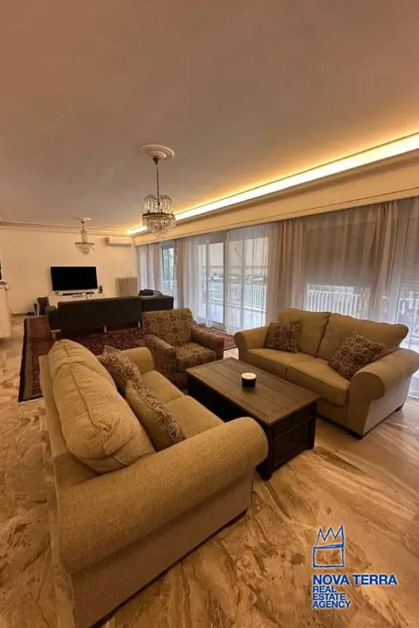 Βούλα ενοικιάζεται ανακαινισμένο και πλήρως επιπλωμένο και εξοπλισμένο διαμέρισμα στον 1ο όροφο συνολικής επιφάνειας 180.00 τ.μ. τιμη 2900 χωρις επιπλα 2100, Περιλαμβάνει άνετο σαλόνι με τζάκι, λειτουργική κουζίνα, 3 υπνοδωμάτια (το ένα master), δύο μπάνια