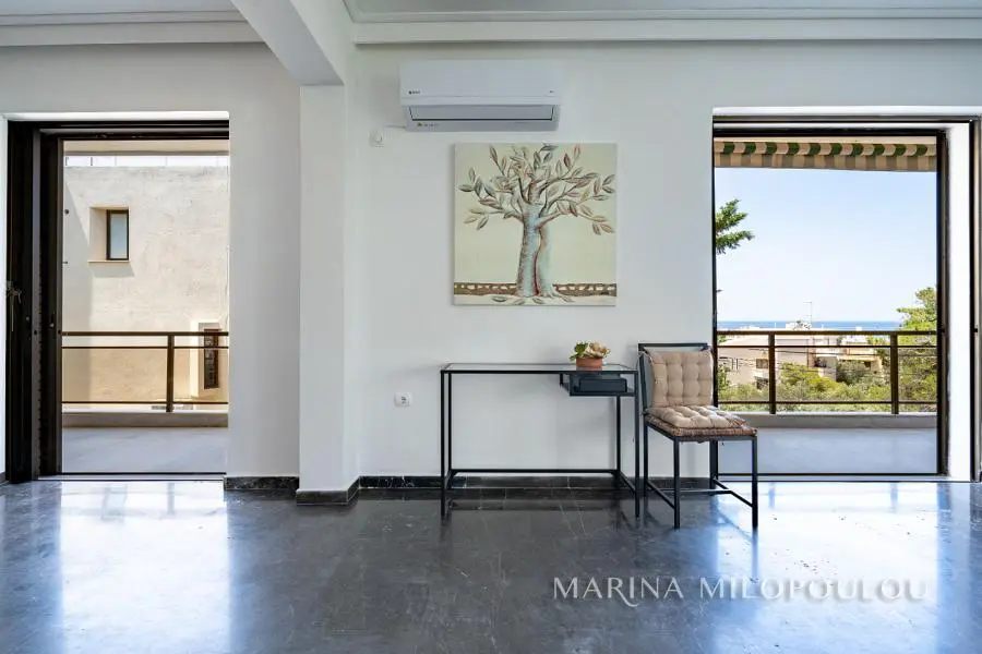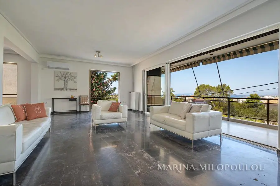 ΒΟΥΛΑ - Πηγαδάκια, οροφοδιαμέρισμα 2ου ορόφου, επιφανείας 145 τμ, στα σύνορα με Βουλιαγμένη και πολύ καλή θέα θάλασσας. Άνετος χώρος υποδοχής με τζάκι - τραπεζαρία, χωριστή κουζίνα με ηλεκτρικές συσκευές, 3 υ/δ, 1 γραφείο, 2 μπάνια, μεγάλες βεράντες περιμετρικά. Διαθέτει ασανσέρ, μαρμάρινα δάπεδα στους κυρίως χώρους, δρύινα στα υπνοδωμάτια, αυτονομία θέρμανσης πετρελαίου ανά χώρο, 3 A/Cs, διπλά τζάμια στο χώρο υποδοχής, 2 πατάρια επάνω από τα μπάνια, αποθήκη ισογείου 2 τμ,1 θέση στάθμευσης στον ακάλυπτο χώρο. Αποτελεί μέρος 4όροφου καλοδιατηρημένου κτιρίου με συνολικά 4 ιδιοκτησίες και όμορφο περιβάλλοντα χώρο. Τιμή ζώνης 2400€. Κοινόχρηστα περ 40€. Εξαιρετική θέση ακινήτου σε υψομετρικό σημείο, με αμεσότητα πρόσβασης σε πευκόφυτο λόφο, δίνοντας έντονη αίσθηση της εξοχής, με απόλυτη ησυχία, μόλις 850 μέτρα από την θάλασσα. Απόσταση 800 μέτρα από την Λεωφ. Ευελπίδων 1,3 χλμ από την οργανωμένη παραλία του Apollon Beach Hotel στο Καβούρι, 2 χλμ από την πλατεία της Βούλας, 3 χλμ από την Βουλιαγμένη και από την Βάρκιζα, 5 χλμ από τον εμπορικό ιστό της Γλυφάδας και 18 χλμ από το αεροδρόμιο.